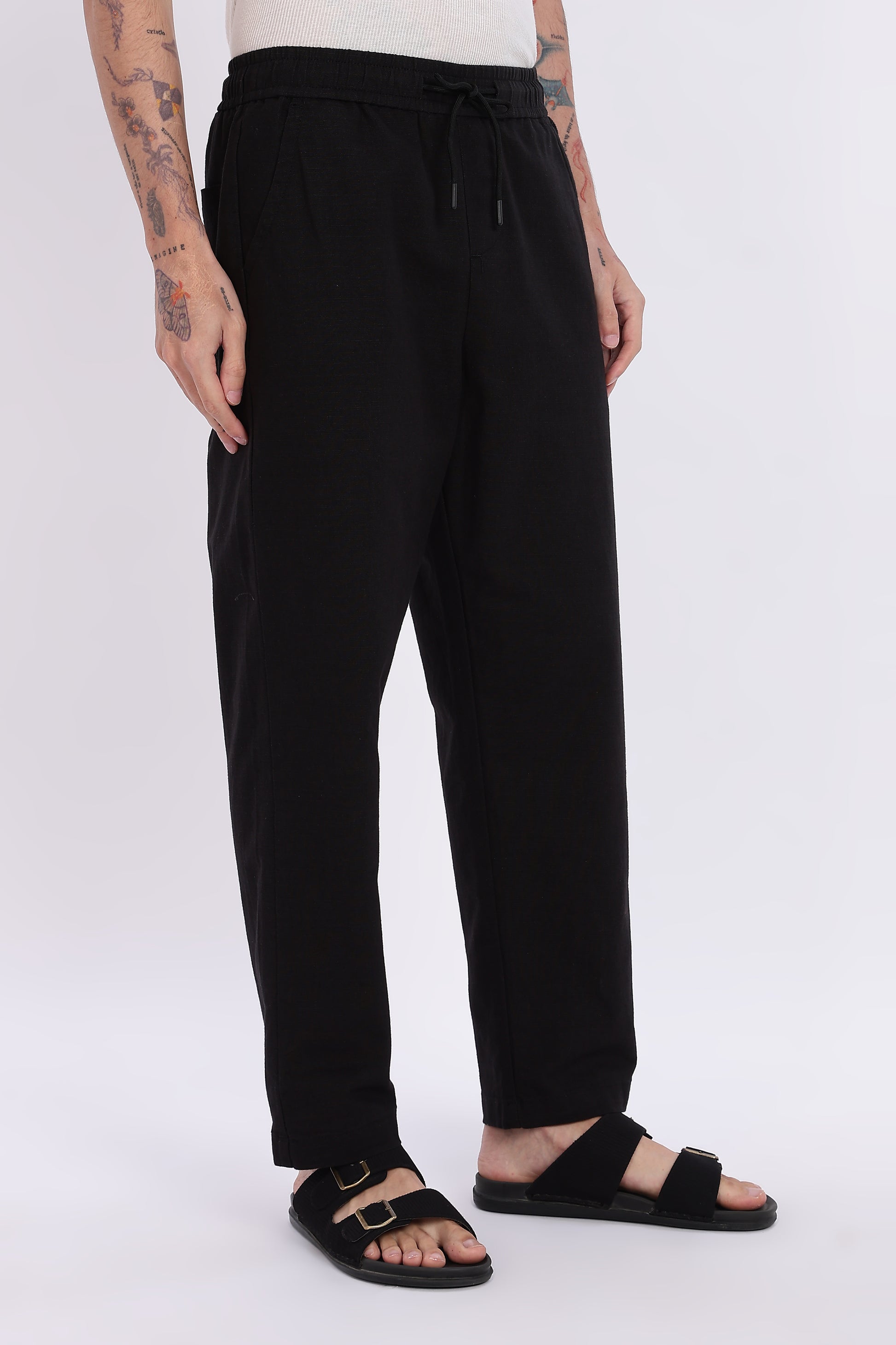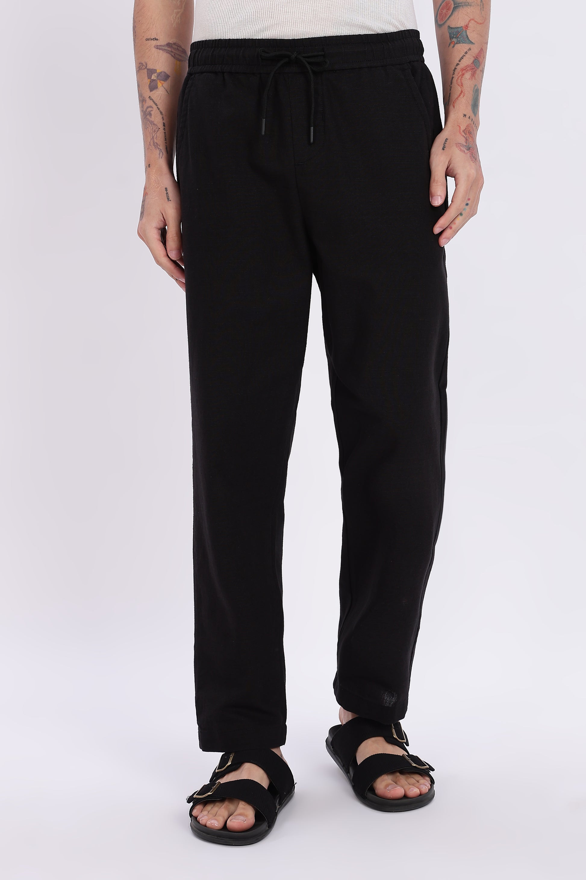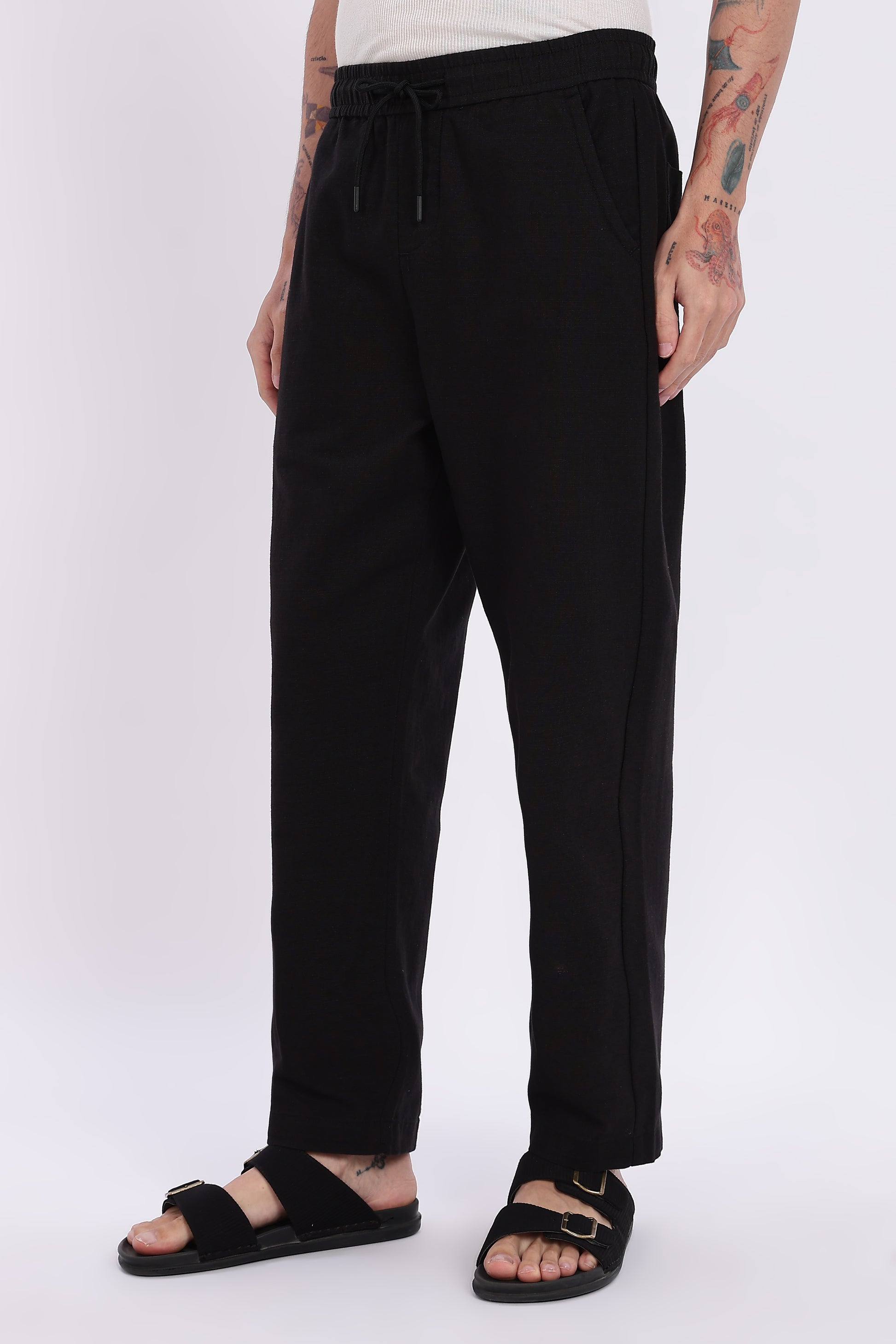 These pants are crafted in a classic black shade with a plain linen finish, offering a relaxed yet refined look. Designed in a regular fit with an ankle-length cut, they provide both comfort and versatility for everyday wear. Lightweight and breathable, these pants are perfect for casual outings, summer days, or pairing with shirts and kurtas for a smart casual ensemble.