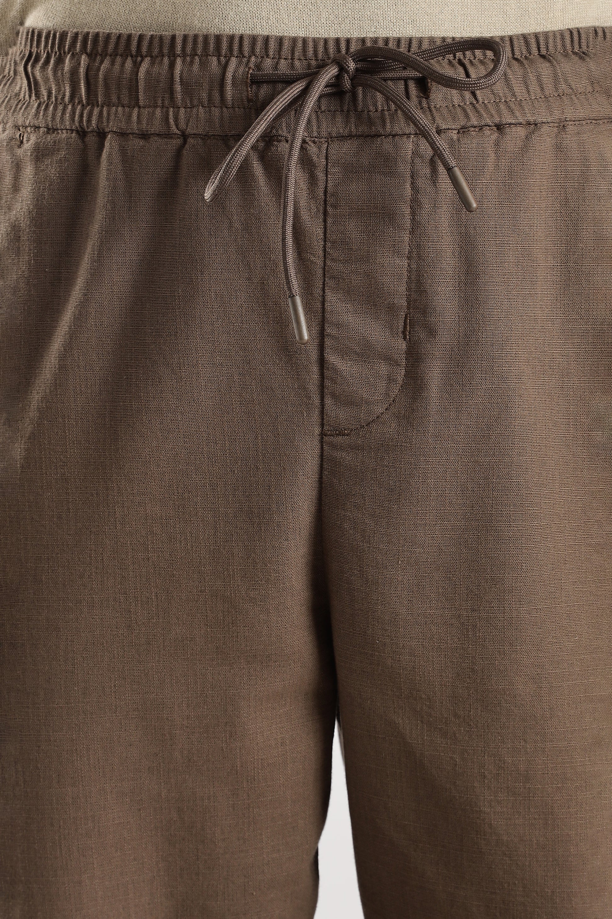These pants are styled in a warm camel brown shade with a plain linen finish, giving them a relaxed yet sophisticated appeal. Designed with a regular fit and ankle-length cut, they offer comfort along with versatile styling. The breathable linen fabric makes them ideal for casual wear, travel, or pairing with shirts and kurtas for a polished look.
