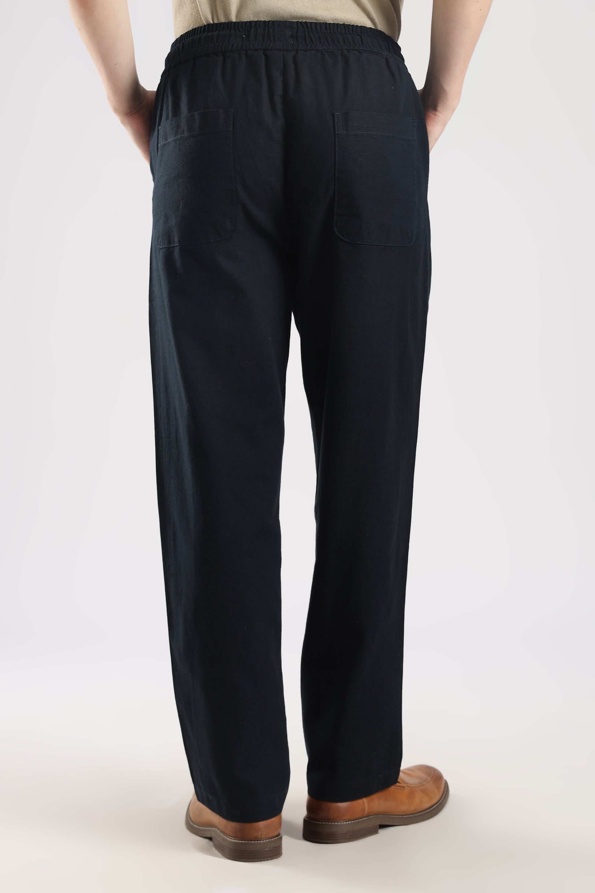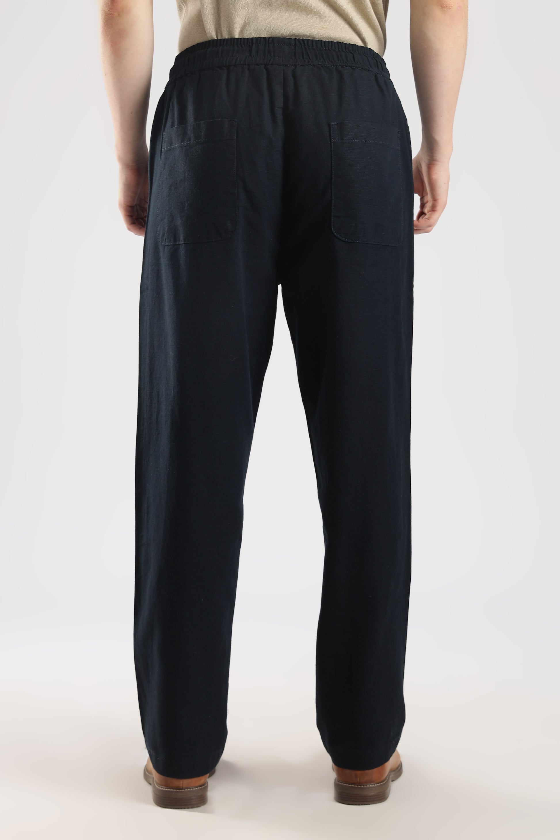 These pants are crafted in a classic navy blue shade with a plain linen finish, offering a relaxed yet refined look. Designed in a regular fit with an ankle-length cut, they provide both comfort and versatility for everyday wear. Lightweight and breathable, these pants are perfect for casual outings, summer days, or pairing with shirts and kurtas for a smart casual ensemble.