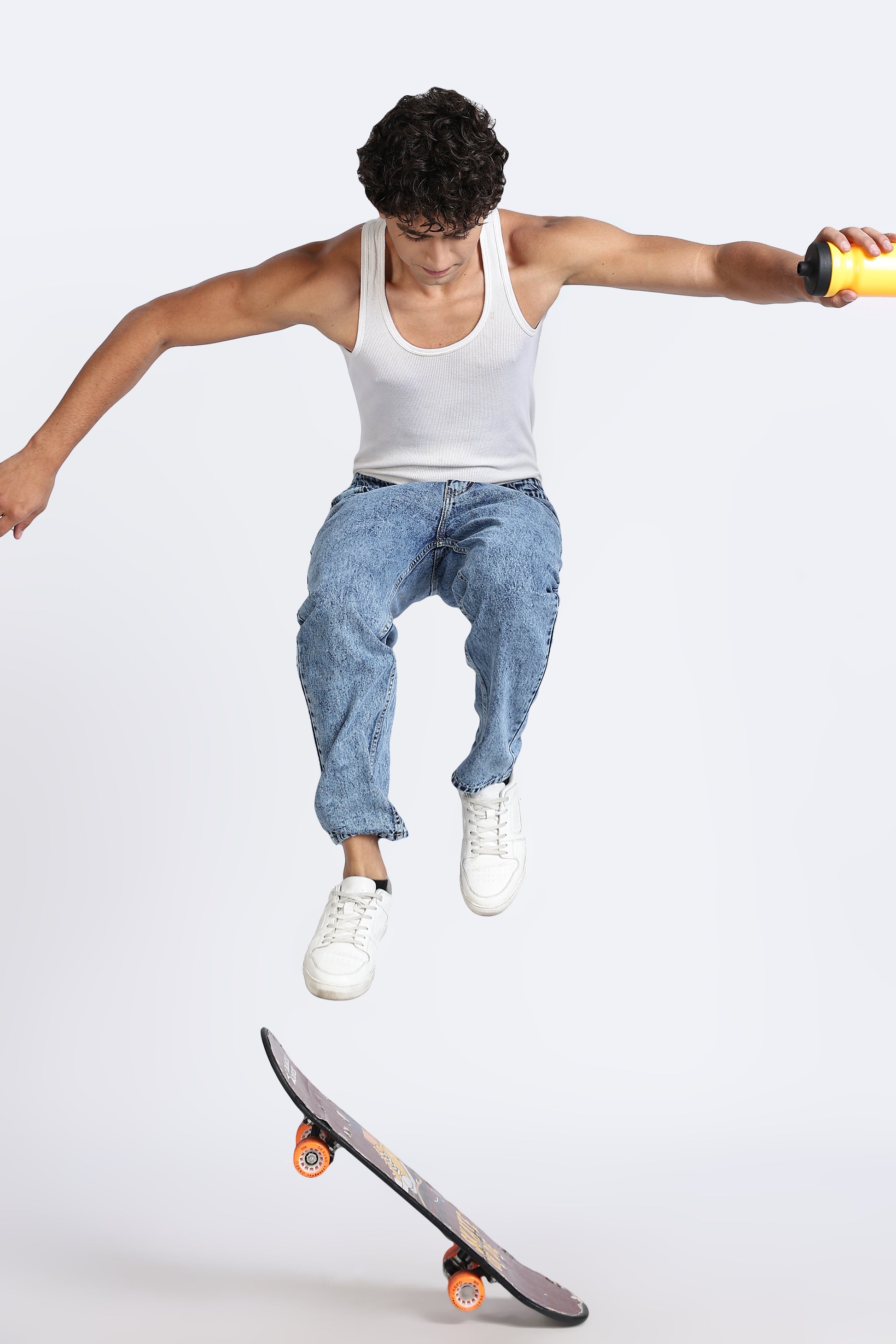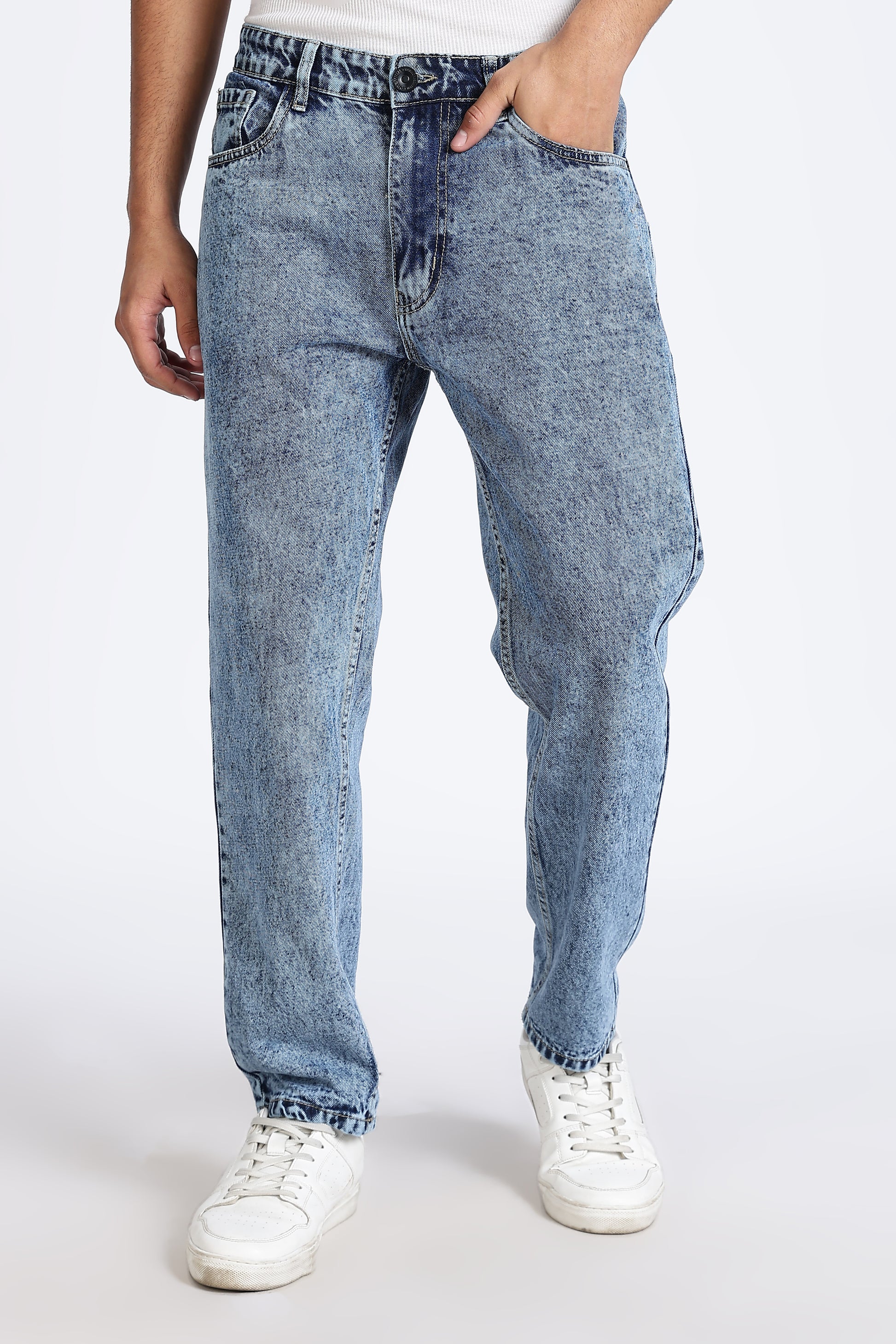 These jeans are crafted in a light blue wash, bringing a fresh and casual vibe to your denim collection. Made from durable denim fabric, they feature a regular fit with an ankle-length cut, offering comfort along with a relaxed silhouette. Perfect for pairing with tees, shirts, or oversized tops, these jeans are a versatile choice for everyday wear.