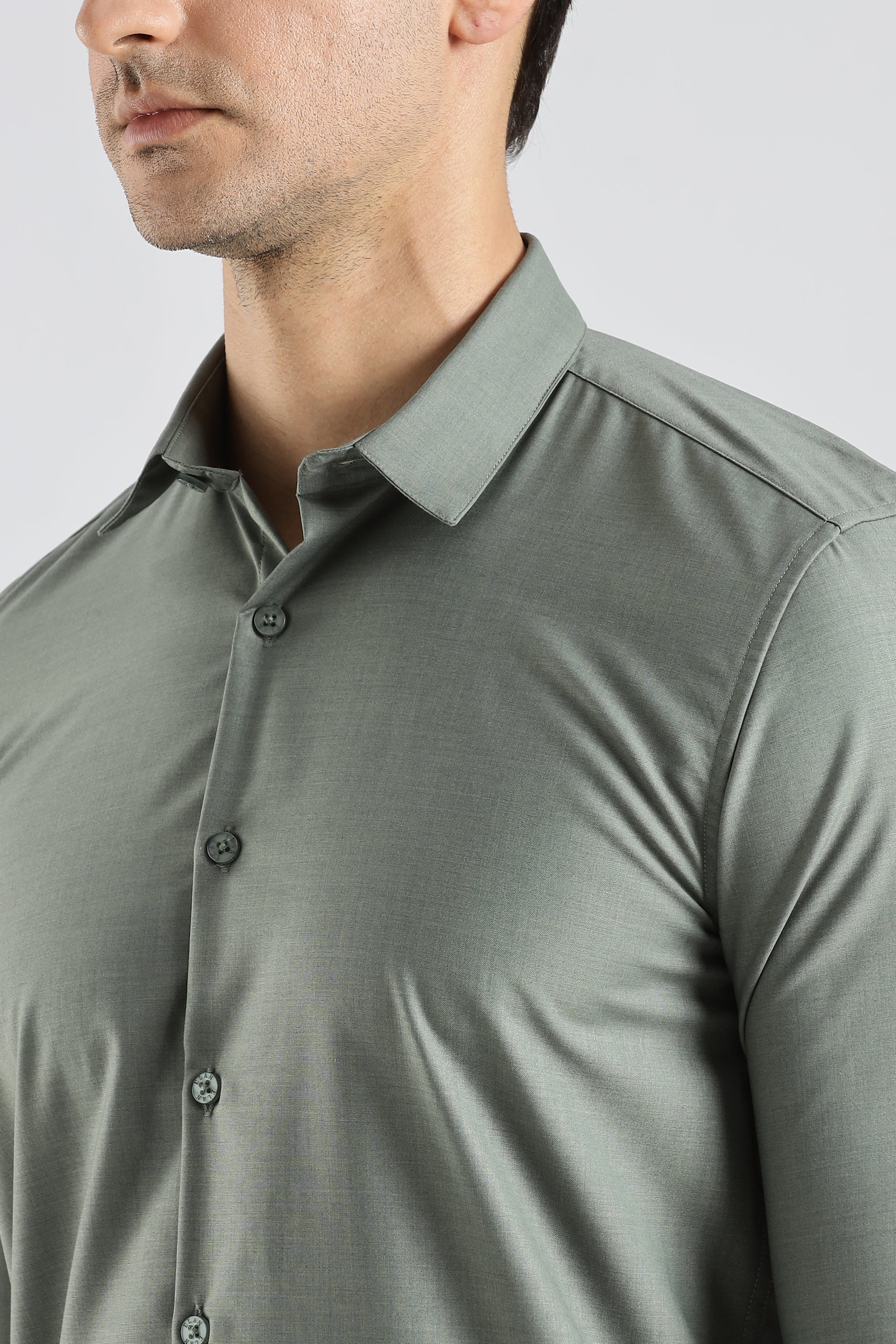Add a refined touch to your wardrobe with this Plain Ash Green Melange Wrinkle-Free Shirt - a perfect blend of elegance and ease. The muted ash-green tone paired with the soft melange finish gives this shirt a sophisticated yet relaxed appeal. Tailored from wrinkle-free fabric, it ensures a crisp, fresh appearance from morning to evening.