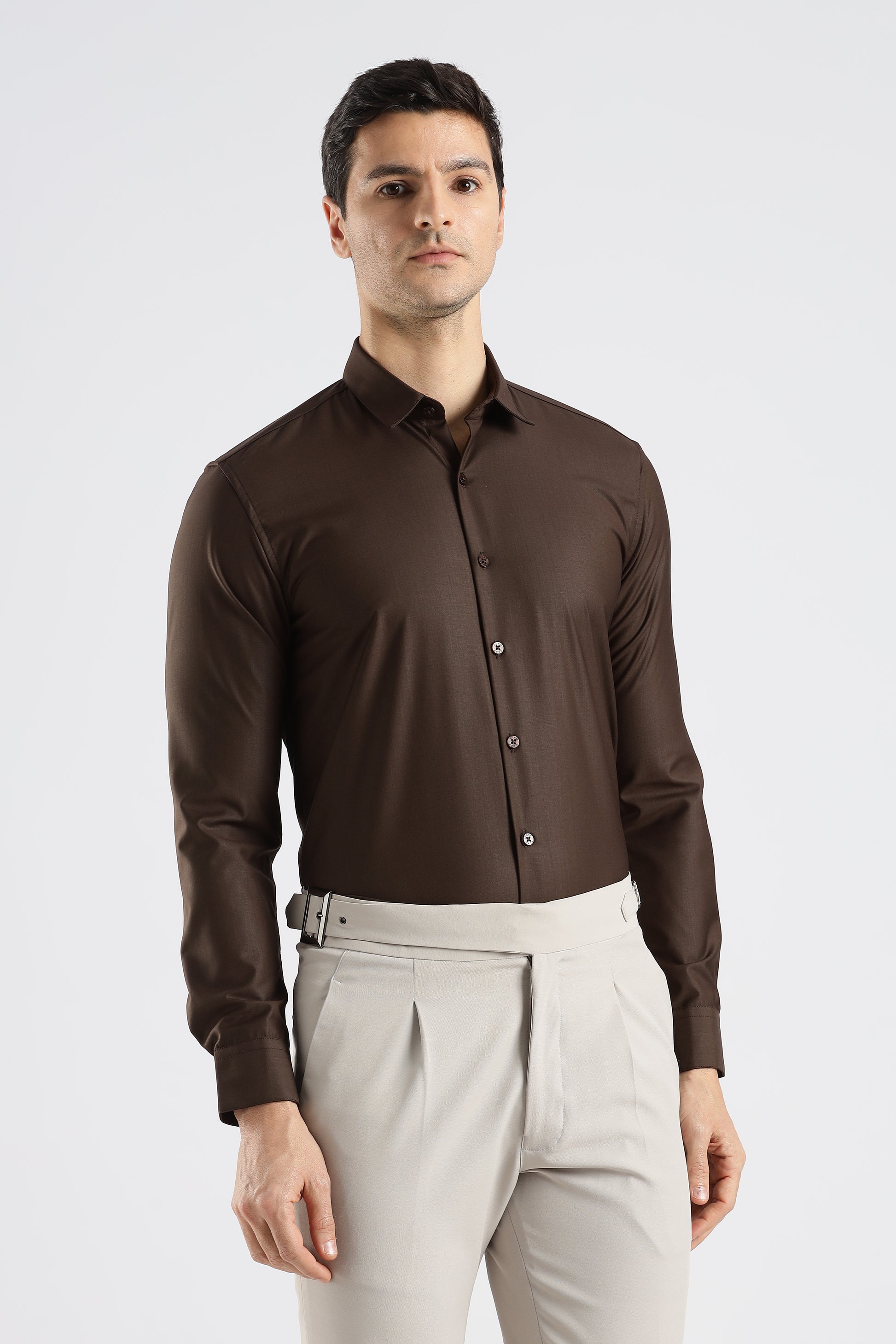 Timeless and effortlessly refined, the Plain Coffee Brown Melange Wrinkle Free Shirt is a statement of grounded sophistication. The warm coffee hue brings depth and character, while the melange weave adds a subtle textured finish. Crafted from high-quality wrinkle-free fabric, it ensures day-long smoothness, comfort, and versatility - perfect for work or evening occasions.