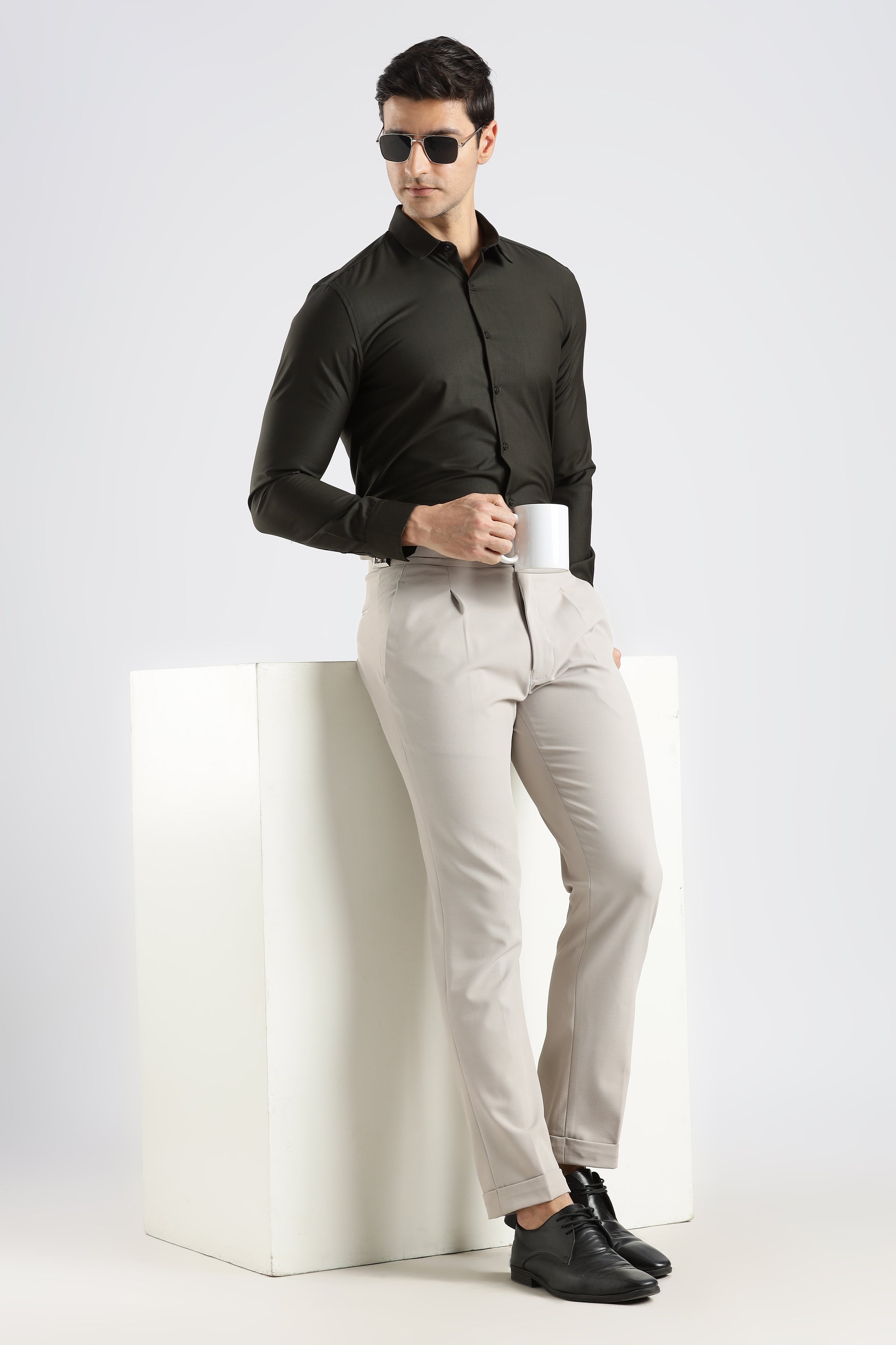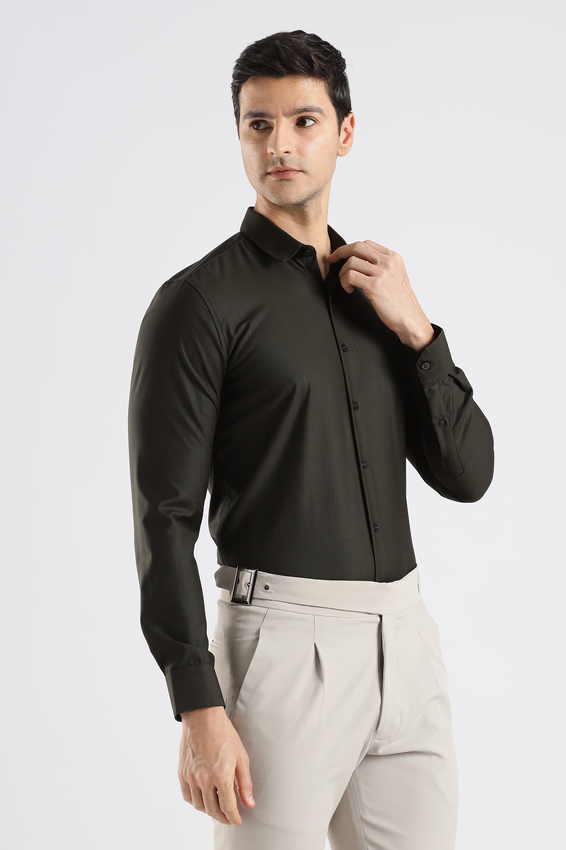 Understated yet effortlessly stylish, the Plain Olive Black Melange Wrinkle Free Shirt adds a refined edge to your wardrobe. The earthy olive tone is complemented by a soft melange texture, offering a perfect balance of casual sophistication and smart appeal. Crafted with wrinkle-free fabric, this shirt keeps you looking sharp and composed all day long — ideal for both work and weekend wear.