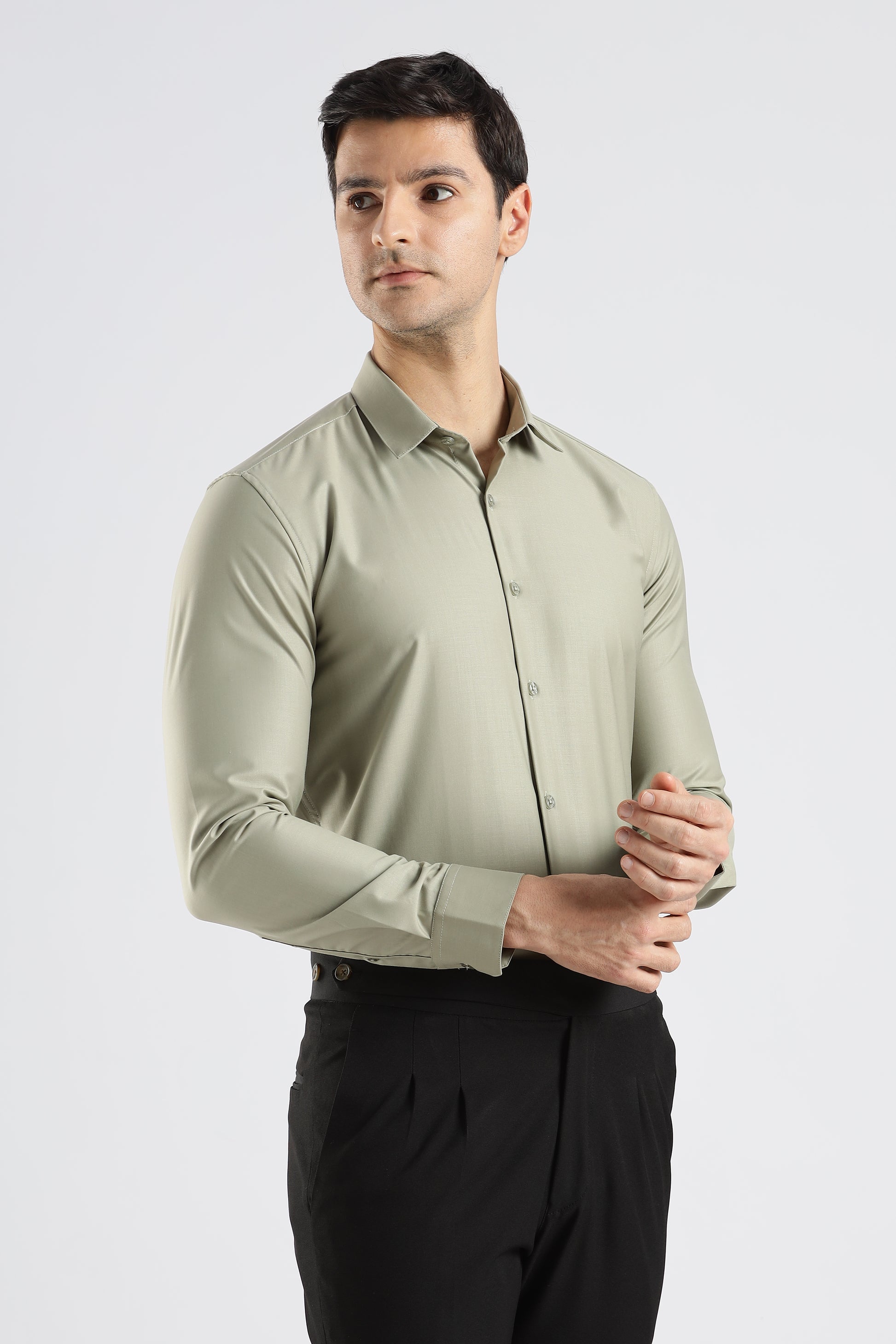 Step into subtle sophistication with this Plain Sage Green Melange Wrinkle Free Shirt. The serene sage tone, paired with the refined melange texture, brings a calm yet polished aesthetic to your wardrobe. Designed for the modern man, its wrinkle-free finish ensures a crisp, fresh look throughout the day, whether at work or casual gatherings.