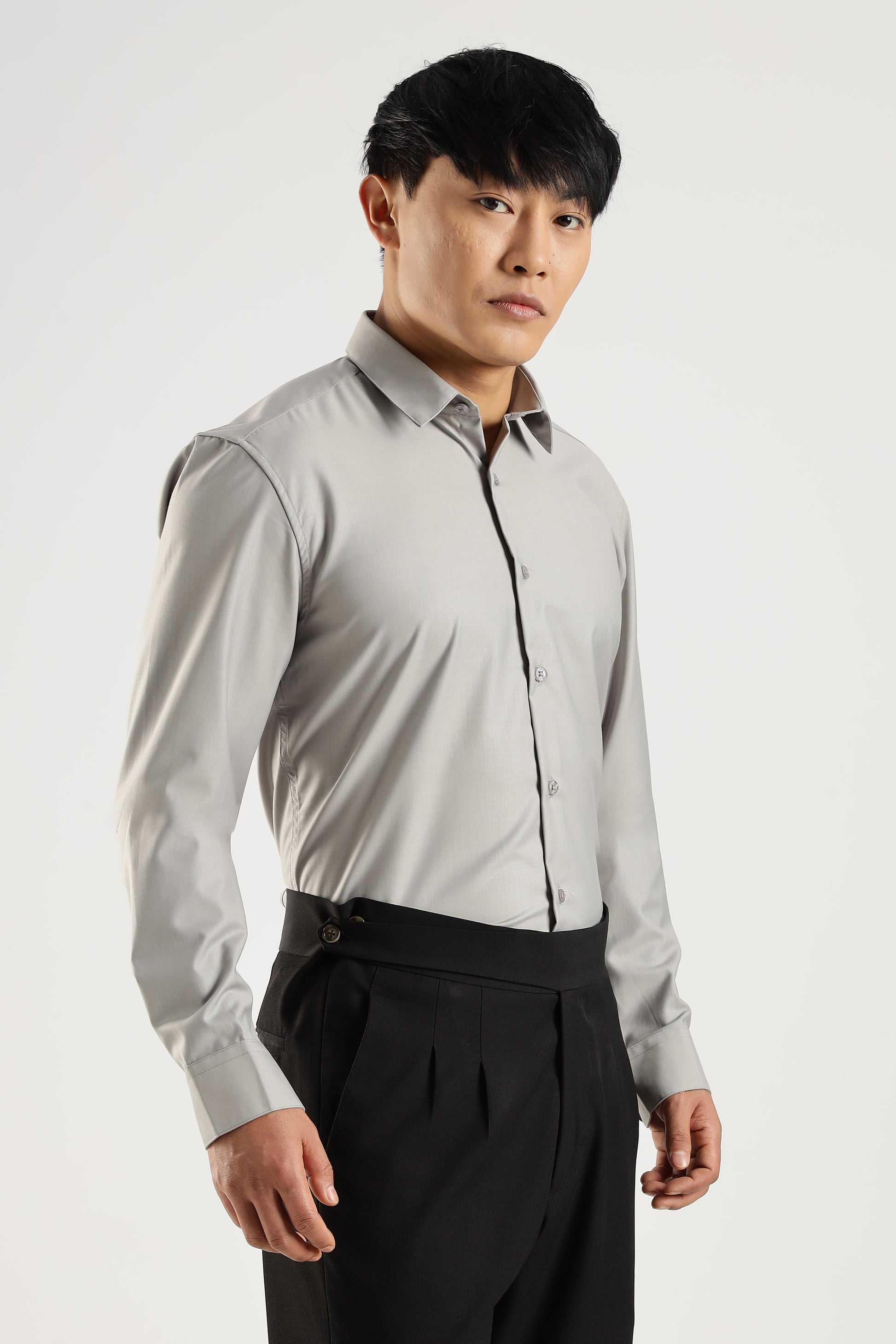 A clean and refined essential crafted for sophisticated dressing. The Silver Mist Melange Wrinkle-Free Shirt features a soft, elegant tone with a subtle melange texture that adds depth without overpowering your look. Designed to stay crisp all day, its wrinkle-free fabric keeps you polished through work hours, meetings, and evening plans - effortlessly stylish and low-maintenance.