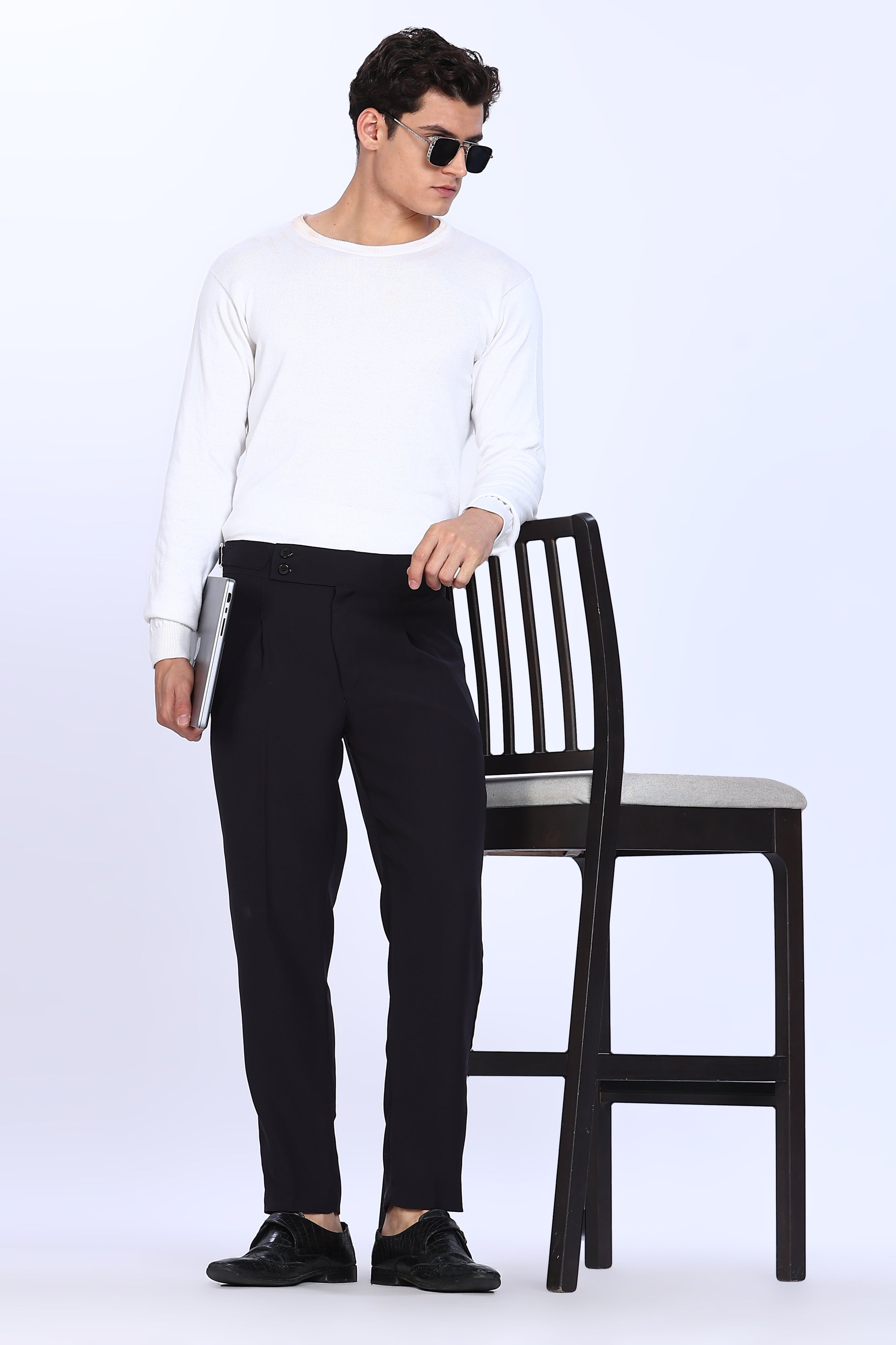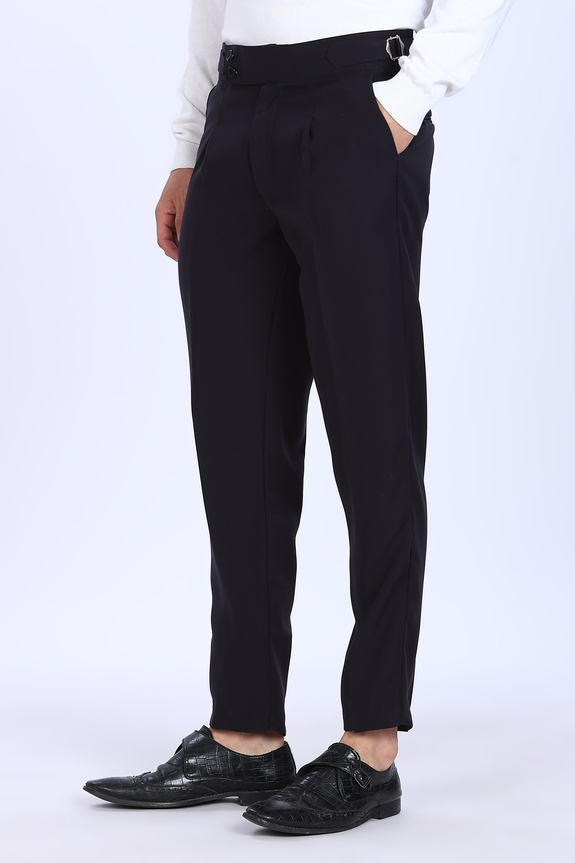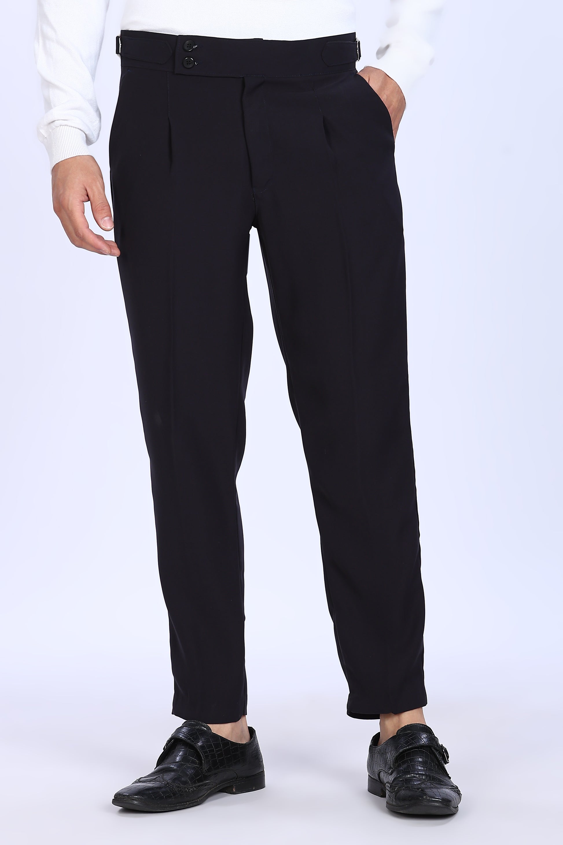 * Waistband: The most distinctive feature of Gurkha pants is the waistband. Although the full detail isn't clearly visible in the image, the style typically has a broad waistband with a double-buckle closure on the sides, or a wrap-around band that buckles on one side. The pants in the photo seem to have a relatively flat front, with the distinguishing waist detail partially obscured.