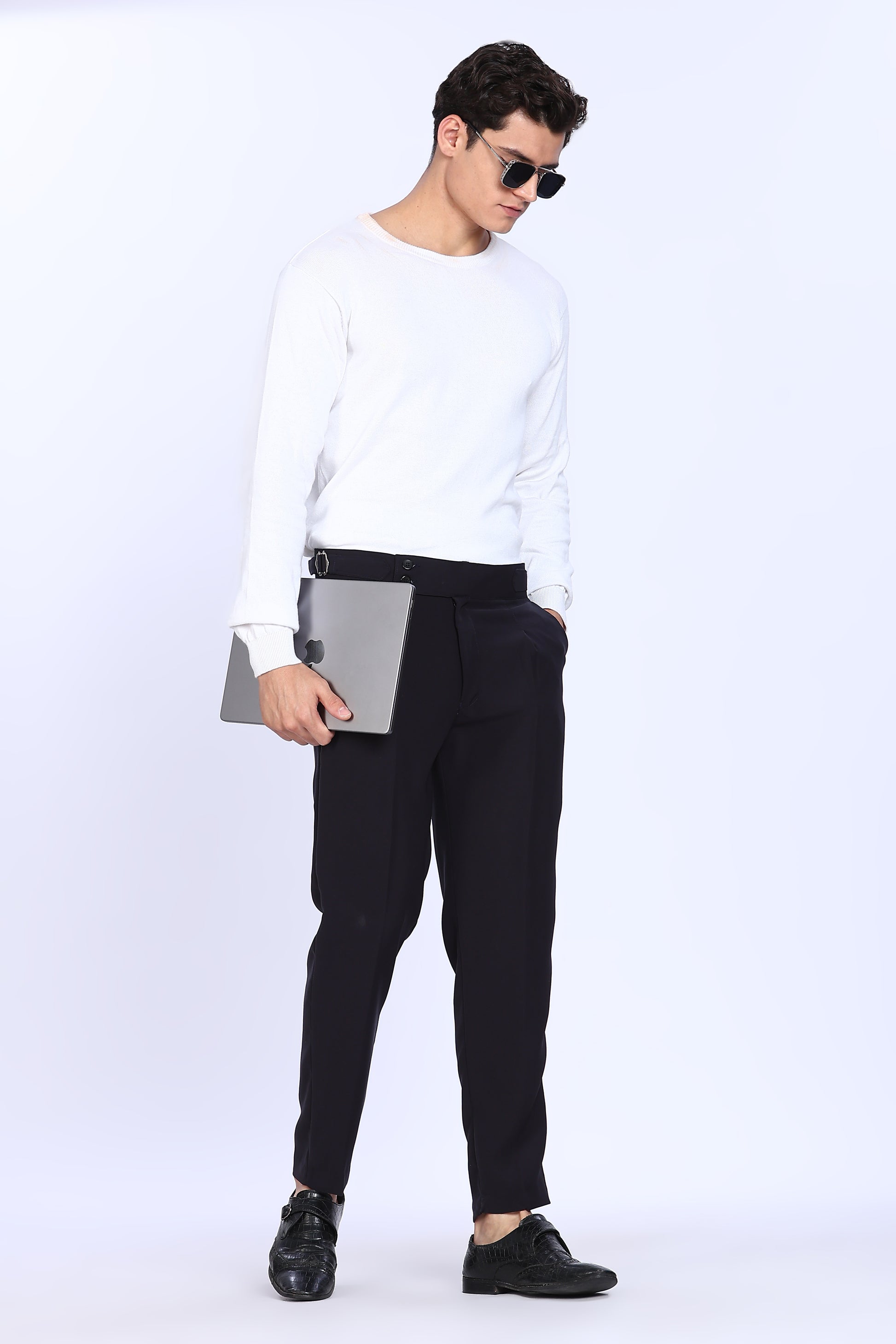 * Overall Style: The pants are a classic and structured garment, often associated with a refined or military-inspired aesthetic. They are styled here with a white shirt, suggesting a formal or office-appropriate look.