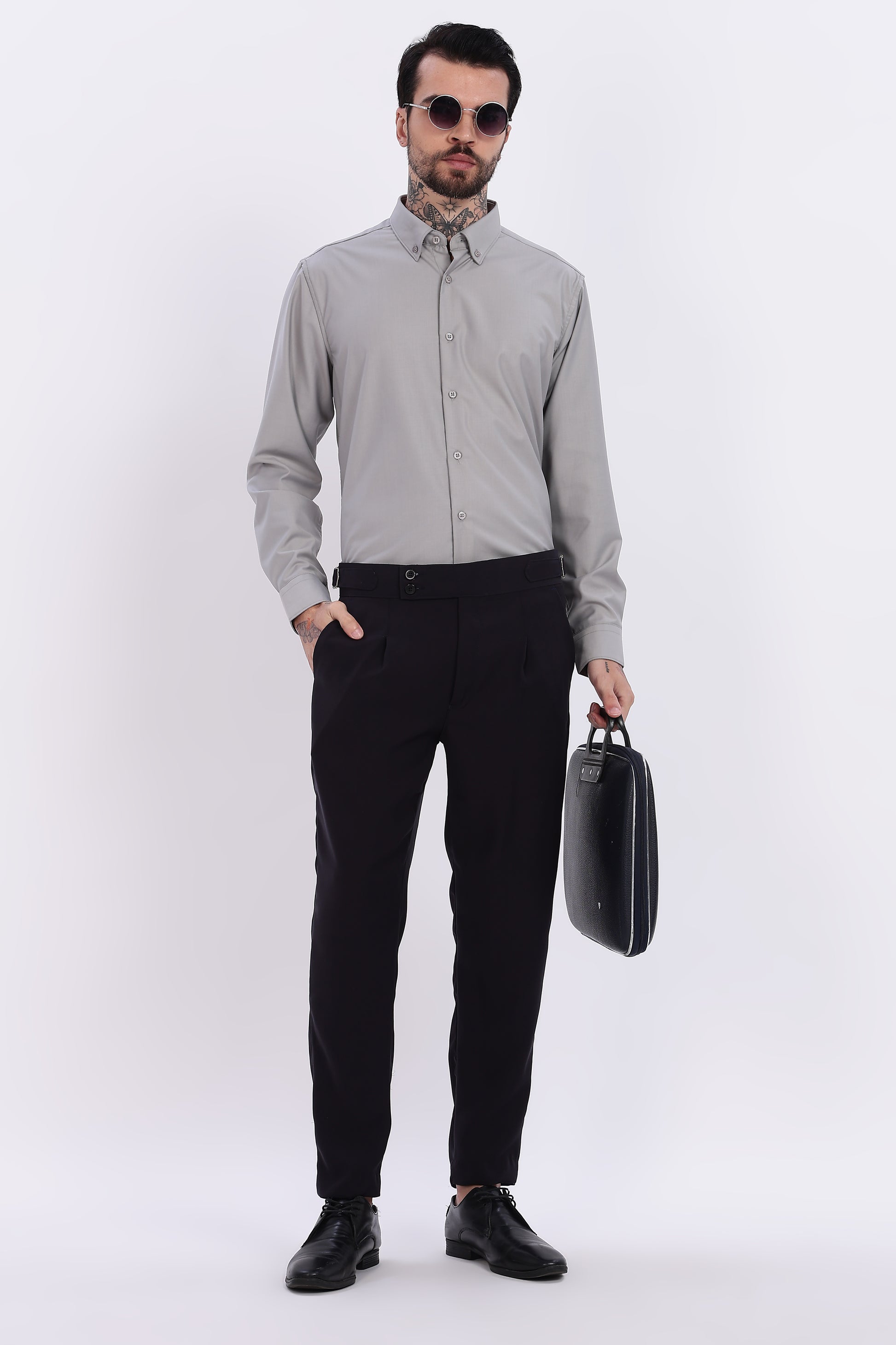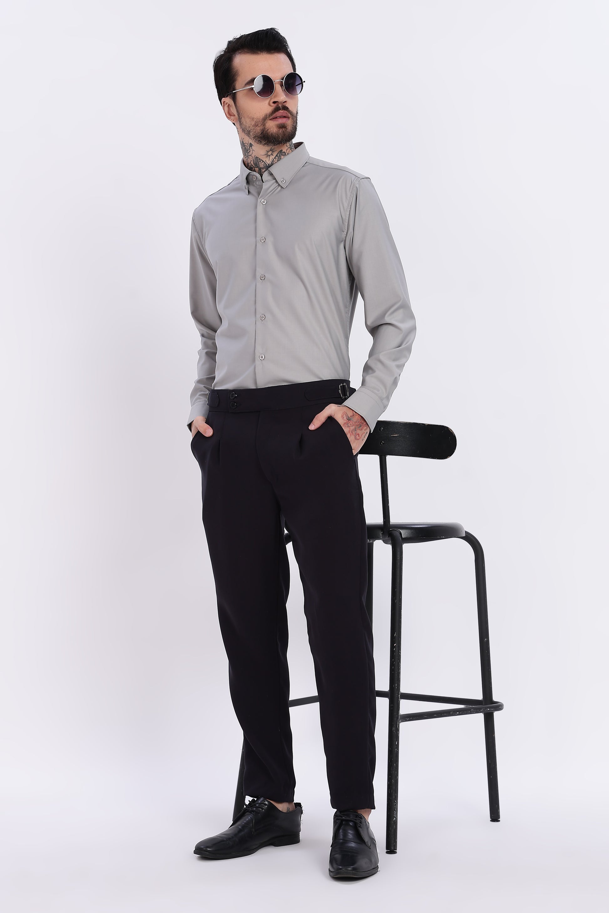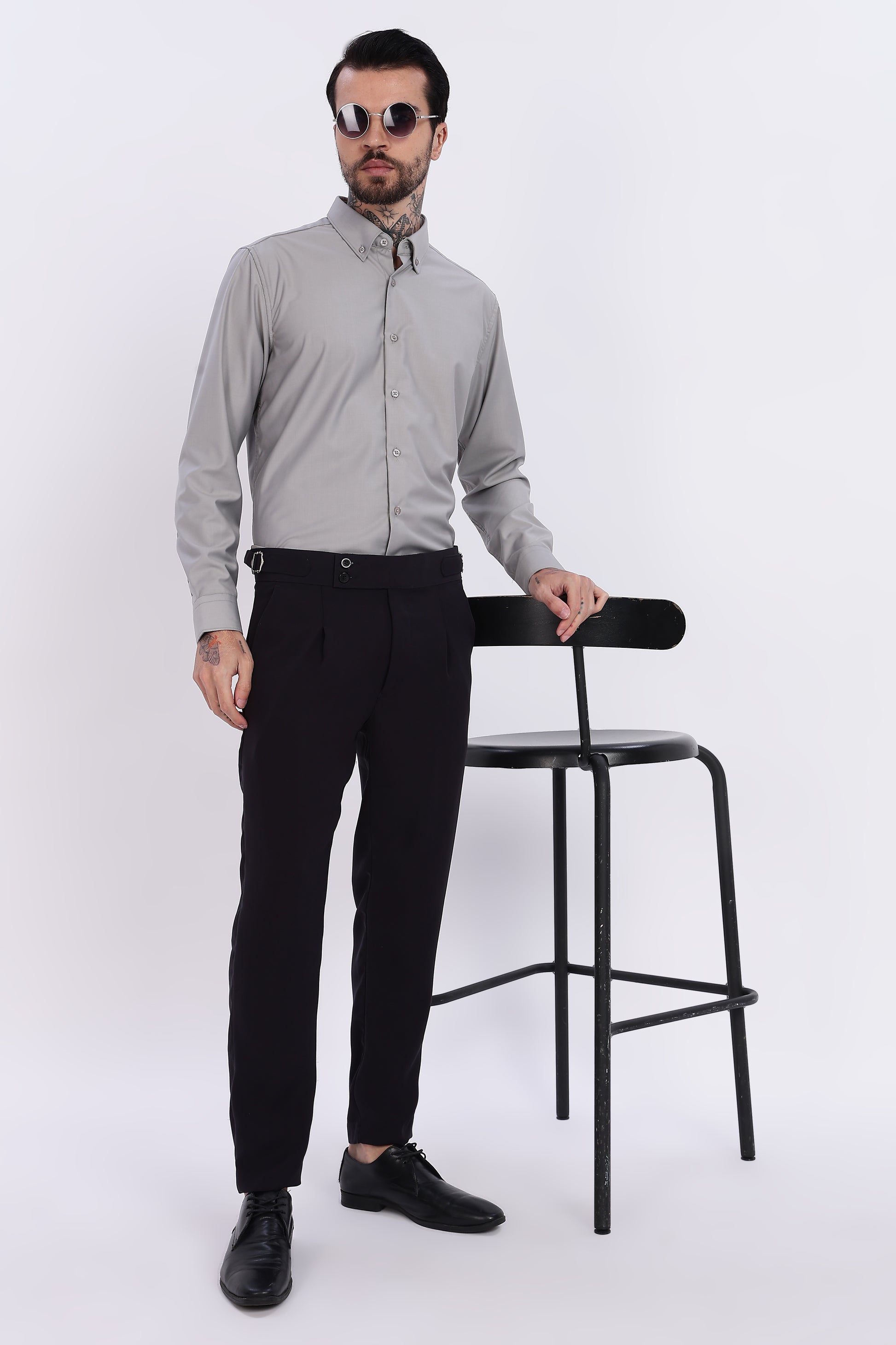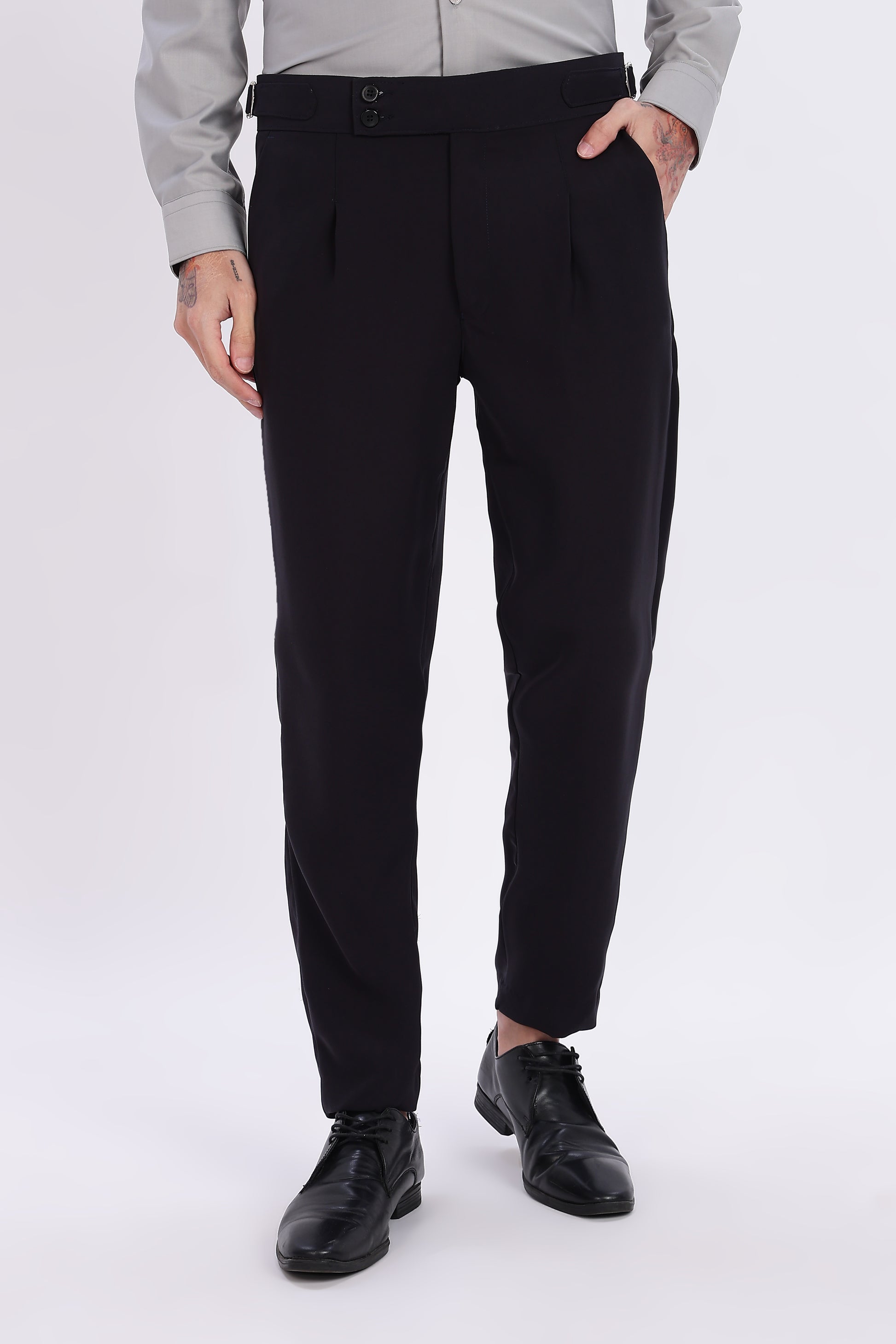 Crafted from rich Armani fabric, these Gurkha pants redefine luxury tailoring with a structured yet feather-soft drape. The iconic extended waistband with a polished metal side buckle enhances the fit and delivers a commanding, premium silhouette - perfect for boardrooms, evenings and elite occasions.