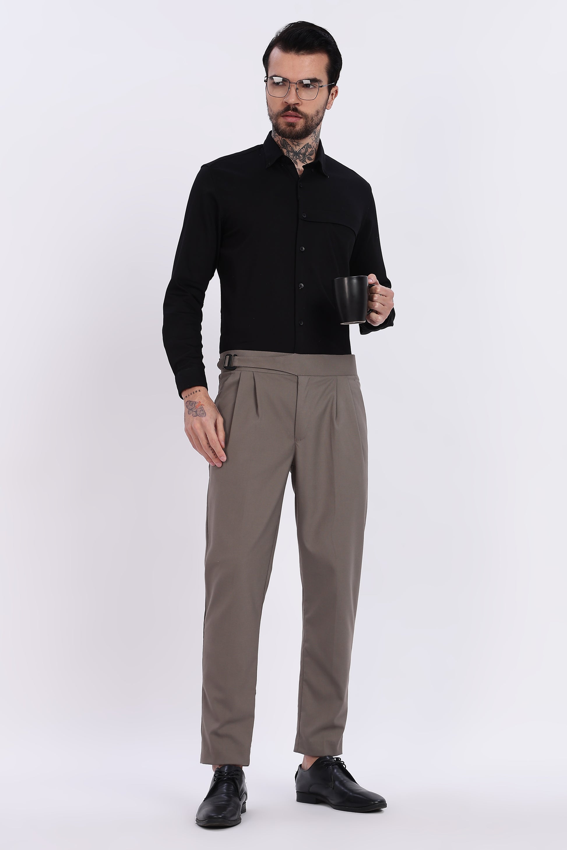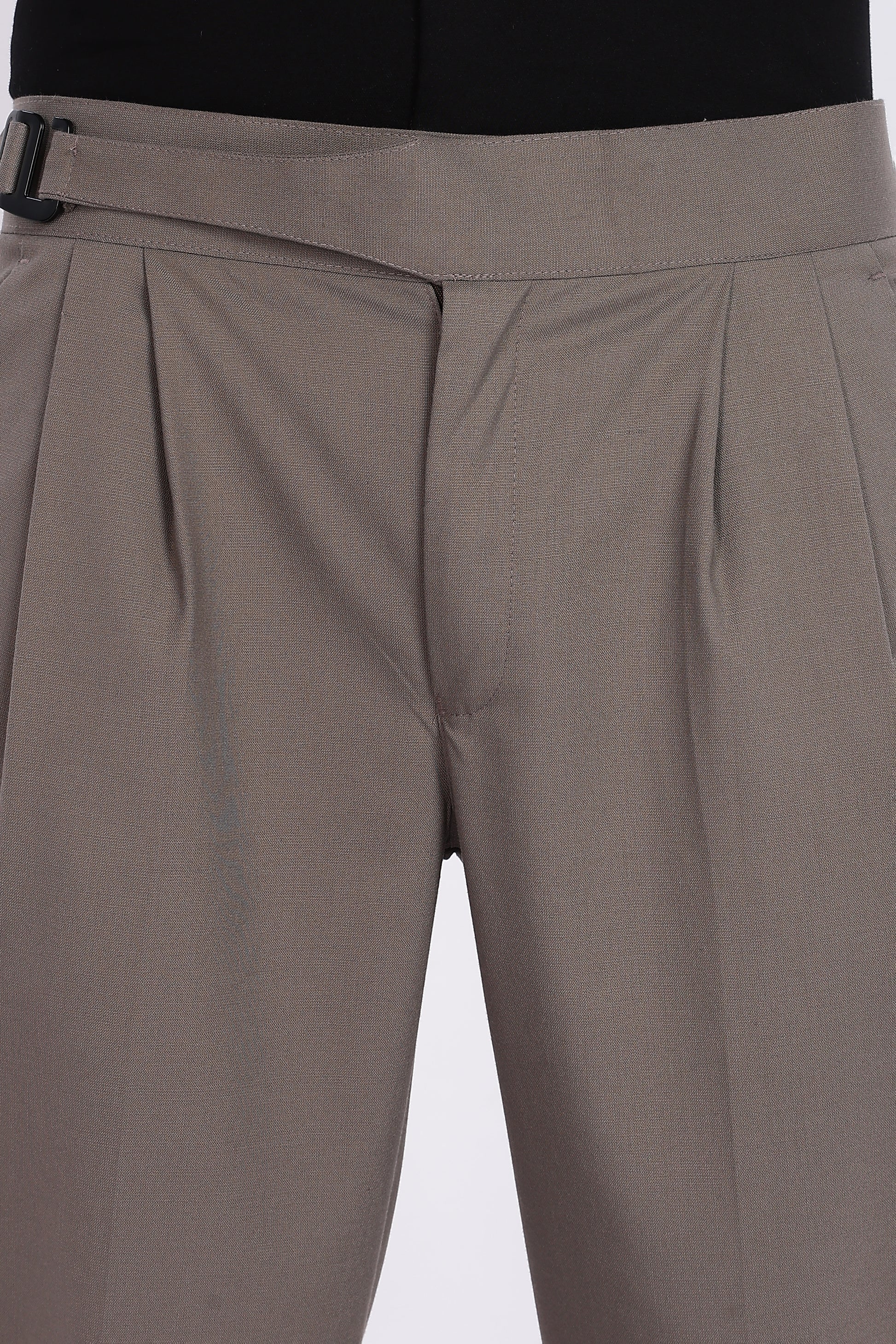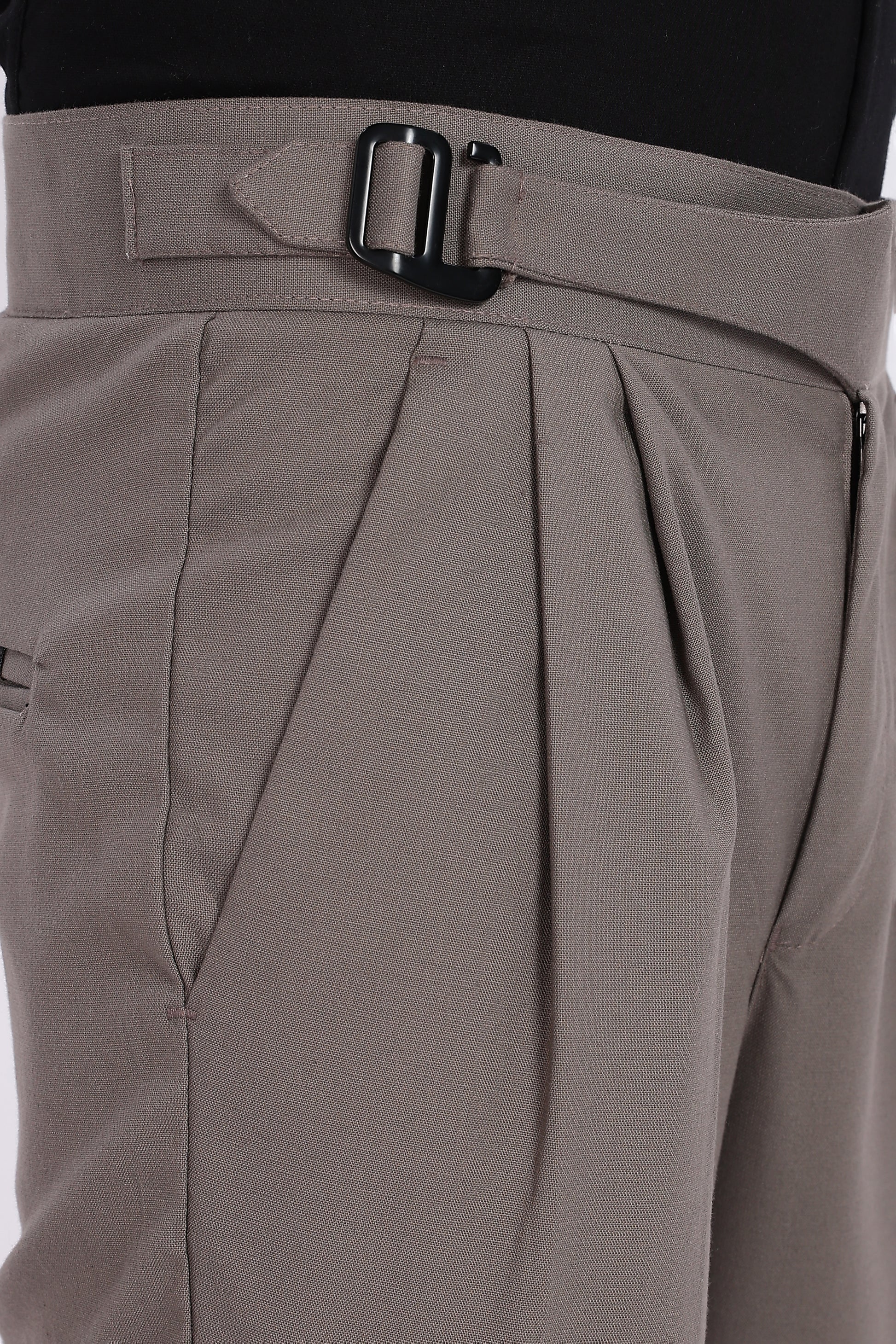 Crafted for men who appreciate sharp tailoring and timeless elegance, this Taupe Italian Gurkha Trouser blends vintage military heritage with modern luxury. Featuring a signature extended waistband with side buckle adjustment and deep front pleats, it offers a structured yet comfortable fit that elevates both formal and smart-casual outfits with ease.