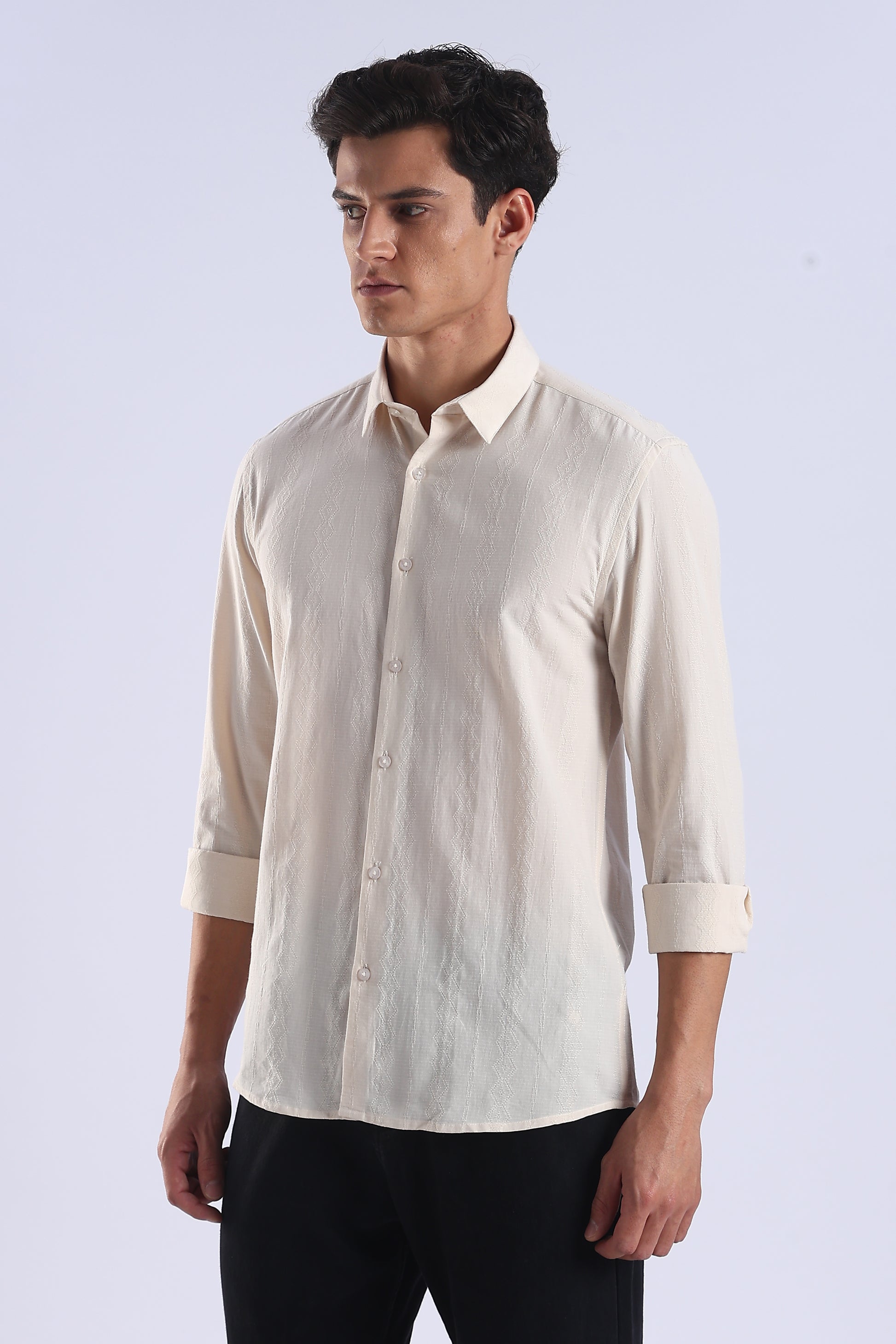 Upgrade your wardrobe with this classic Beige casual shirt for men, designed for both style and comfort. Crafted from high-quality cotton blend fabric, this shirt features: