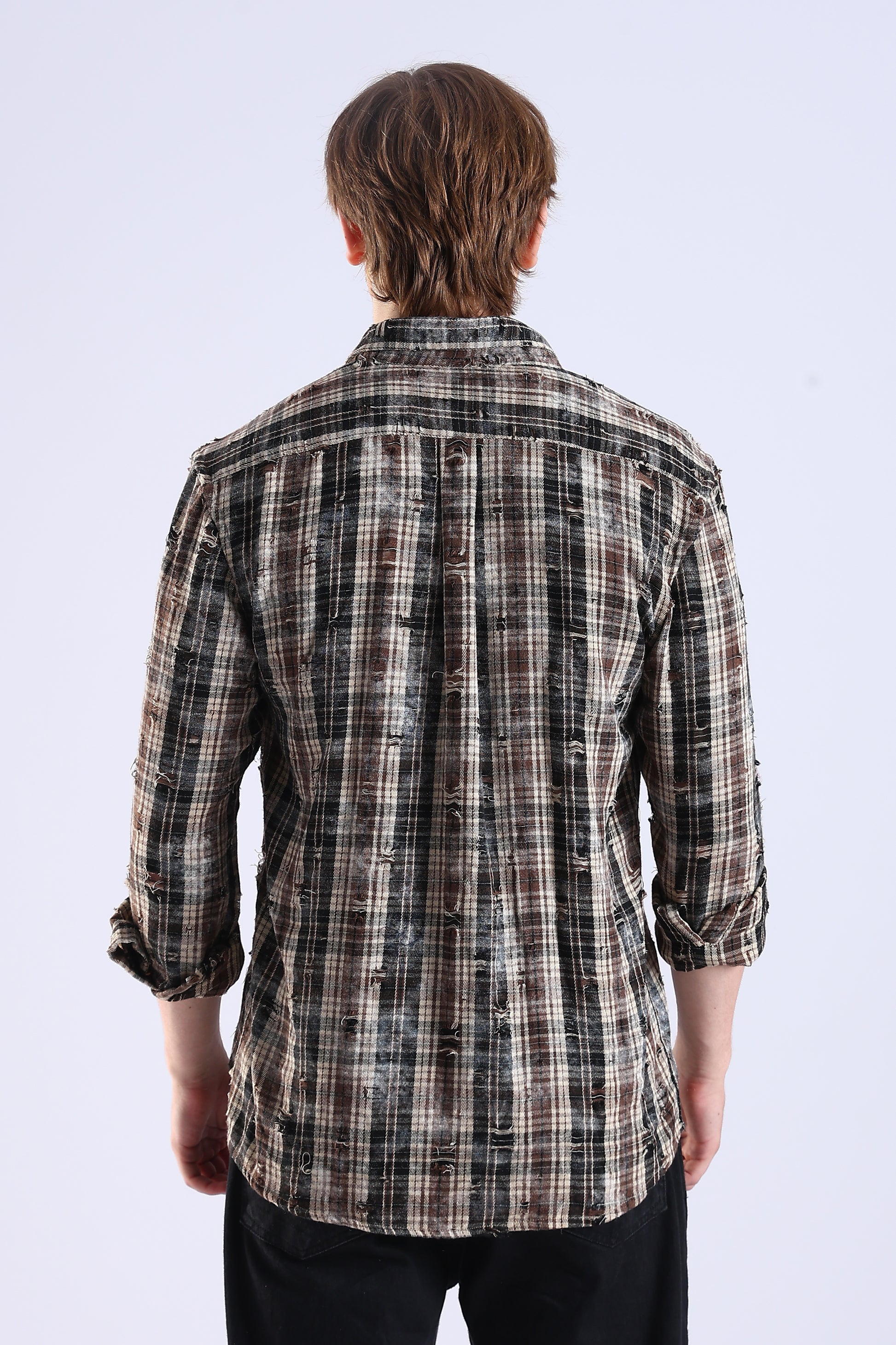 This is a casual men’s full-sleeve shirt featuring a multicolor plaid pattern in shades of black, brown, and white. Designed with a classic button-down front and a spread collar, it offers a relaxed fit ideal for everyday wear. The lightweight fabric ensures comfort, making it suitable for both casual outings and semi-formal occasions.